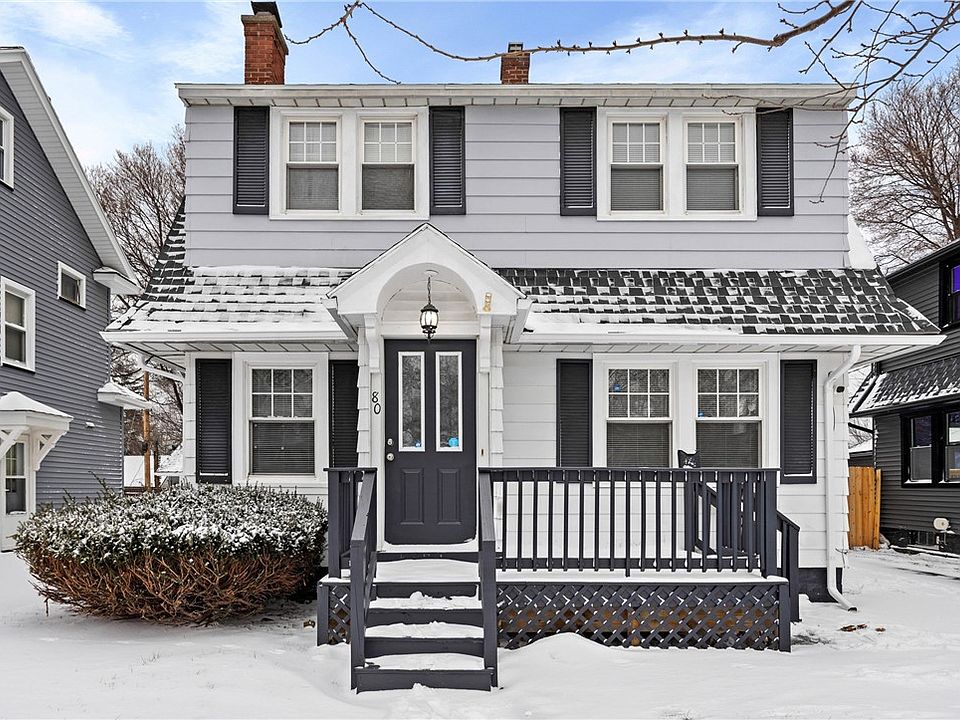 Step inside this deceiving freshly updated 3 Bedroom Charmer, to appreciate the spacious floor plan, as it definitely feels and seems larger than square footage listed! Formally Enter this Classic 3 Bedroom Colonial from the nice front Deck entry into Front Foyer, that leads you into the Spacious Fireplaced Living room with freshly refinished Hardwood floors & opens to spacious Dining Room. Newly Updated Kitchen has ample storage & workspace and access to rear yard through rear Entry door! 2nd Floor offers 3 nice size Bedrooms, pull downstairs to attic & updated full Bath. Patio off back of house overlooks nice size fenced rear yard & 1 car detached Garage! Partially finished Lower Level, offer's potential Rec Rm space. Architectural Shingle Roof was a tear off & new in 2018 approximately, Hot Water Tank new in 2020, Maintenance Free Siding, some Thermopane Windows & more! Truly a nice house in a conveniently located part of Greece! Delayed negotiations until January 13tth, 2026 at 11 a.m.. All newer Appliances remain & immediate possession available!
