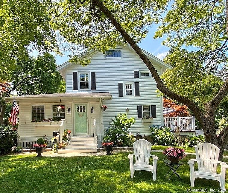 Enchanting Colonial in sought after Glenbrook neighborhood. The welcoming landscaped fully fenced-in yard and colorful perennial gardens that surround this charming house immediately make you feel at home as you walk up the path to the front porch. Step inside to the cozy entry den with hardwood floors which has multiple uses. Open the french door to the bright spacious combination Living and Dining Room with hardwood floors, period fireplace, built-ins, vaulted ceiling, skylights the perfect space for family gatherings and entertaining. The large beautifully updated Eat-in Kitchen features stainless appliances, granite counters, gas range, loads of cabinet space and sliders to the deck for grilling and outdoor dining. The second level includes 3 bedrooms, two with large double closets, updated full bath and walk-up attic with tons of storage space. Plus a first floor powder room, full dry basement currently used as home office/play area with laundry and walk-out to driveway. In addition this home has many updates including central air on first floor, new gutters, newer roof, driveway sealed, custom built-ins and more There is also a shady patio for relaxing, a children's play set and storage shed. Plus an added bonus only an 8 minute walk to the train This move in ready home must be seen to appreciate