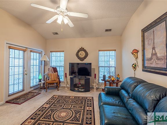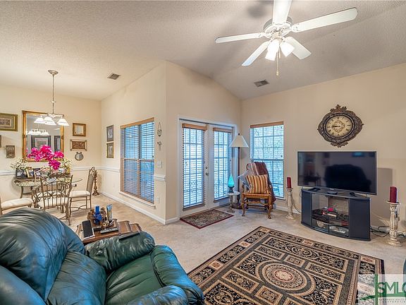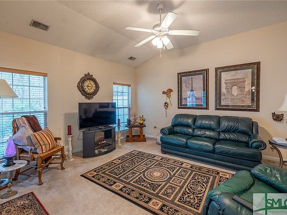 Check out this fully furnished and maintenance-free home in Highland Crossing, quietly tucked away in the amenity filled Highlands community! Conveniently located within a few miles of I-95, Gulfstream, Georgia Ports, Savannah Hilton Head International Airport, Tanger Outlets, and everything that the thriving Pooler area has to offer! Enjoy a peaceful wooded view from your covered back patio or keep up with the neighbors from your cozy front porch. The home boasts 9' ceilings with tray ceilings in the owner's suite, and an owner's bath with double vanities and a huge shower with double bench seats. Hardwood floors are featured in the foyer, hallway and kitchen, while plush carpeting runs throughout the living room and both bedrooms. The kitchen offers ample cabinets, a sizeable walk-in pantry and attractive countertops, and opens to the spacious living room. All kitchen appliances as well as washer and dryer remain with the home. This property is not in a flood zone!