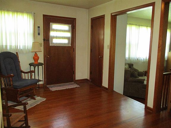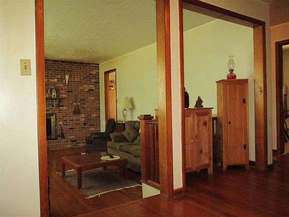 Brick Ranch in the country but only minutes from the city. This home offers beautiful hardwood floors, a large foyer, sunken living room with woodburning fireplace and a partially finished basement. There are 3 bedrooms, 2 bathrooms and a room in lower level that could be a 4th bedroom. For convenience, there is a washer/dryer hookup on both levels. The lower level family room has knotty pine walls and a summer kitchen that could be made functional. Situated on .81 acres, there is also a 24x24 detached garage with electric, concrete floor and manual doors, and dont miss the storage space under the rear patio.