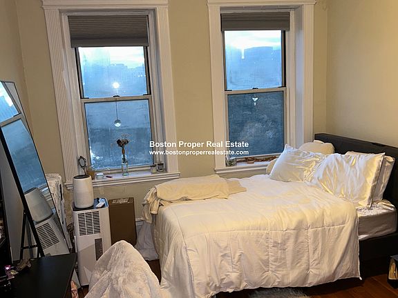 3 bedrooms,. no living room on top floor of grand building along the Fenway. Great street along pretty park on Symphony side of the Fenway. Close to all Fenway schools and greenline. Unit has hardwood floors throughout. Elevator and laundry in the building. Includes heat and hot water. Students ok.