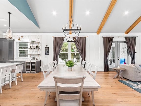 Just a few steps away from the beach or the Intracoastal waterway, this stunning home is truly a gem not to be overlooked. Elevated at 12 feet with impact doors and windows, and fully insulated with whole house cell foam, the home exudes quality from the moment you arrive. With cypress mitered beams accentuating the 14-foot ceilings in the great room, upgraded lighting, and quartz countertops throughout, every corner reflects high-class craftsmanship. The kitchen boasts artisan tiles on the backsplash, slate gray stainless steel appliances, a dual-zone wine cooler, and a walk-in pantry. The master bedroom features a spacious walk-in closet with built-ins for added storage convenience. Its ensuite bath offers a luxurious soaking tub and a separate beautifully tiled seamless glass shower, complemented by a Restoration Hardware double vanity for an extra touch of elegance. Step outside the master bedroom or great room to enjoy the screened-in porch for outdoor entertainment. The covered lanai, adorned with herringbone pavers and an exquisite fireplace, overlooks the double fenced lot with jacuzzi and fire Pit with ample space for a pool. Back inside, a drop station and full bath offer added convenience. Upstairs, a den/office/loft area leads to two generously sized separate bedrooms and another full bath. Nestled in one of St. John's County's most picturesque locations, this impeccably crafted home is a must-see. Around the corner from shops, restaurants and bars. Short trip to over the bridge to The Oldest City. This amazing property is an active vacation rental and has never received anything less than 5 star reviews!