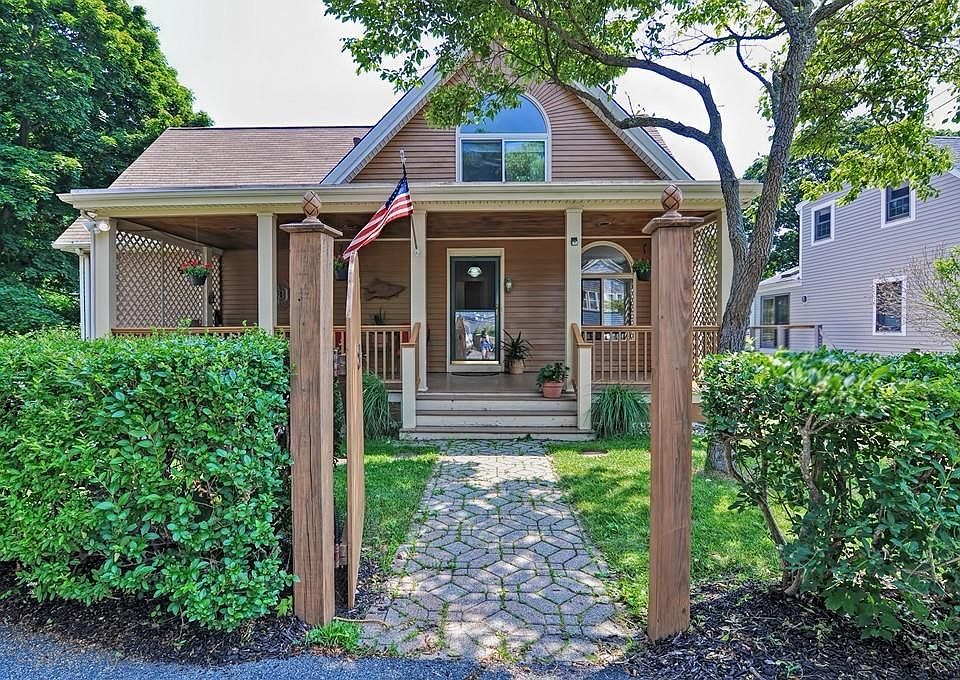 Sited on a large lot with beautiful, peaceful grounds, this lovely home has so much to offer! Multiple decks off the back of the house offer great vistas to sit, relax and enjoy the privacy of the large back yard. The front porch is shady+inviting-a great place to watch the world go by. Inside, gleaming hardwood floors welcome you into a living room and brand new kitchen w/sliders on to one of the rear decks. A recent renovation offers an expansive mstr suite (w/picture windows capturing the view of the back yard) w/a large walk in closet + luxurious master bath. Upstairs, find 3 add'l bedrooms w/nice light and hardwood floors. To the lower level-an open floor plan features an eat in kitchen (and large pantry/ laundry room adjoining it) w/sliders to a deck that comfortably holds a dining area. A family room/TV area is warmed by a wood stove. Another large bedroom with full bath (with a newly insulated storage room) and walk-in closet complete the lower level.