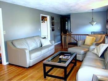 Honey, Stop the Car! You want to be in this house in this neighborhood! Larger than average 50' Hip Roof Split feels very open with Hardwood Floors, 3 Bedrooms & 2 Baths. Master Bed easily accommodates King Size Furniture & has a Master Bath! Finished LL Family Room w/ Fireplace great for cozy entertaining. Enjoy the Screened in Porch for Summer gatherings. Elegantly painted in designer colors. Level Lot, 2 Car garage. Convenient Location nearby Highway, Shopping & Dining.