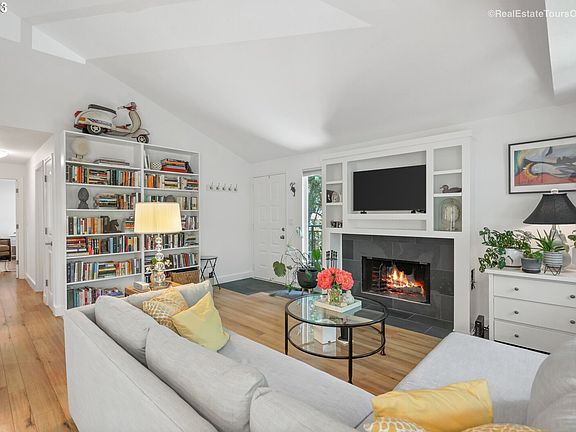 - Features: Bookcases, Builtin Features, Fireplace, Vaulted Ceiling, Wood Floors