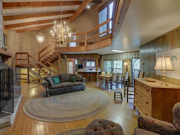 Lake Rabun Lodge with magnificent Big Water Views on Deep water located in central part of lake .Paved access to within yards of house for year round enjoyment. When you enter this Lodge you immediately come into a soaring two story Rustic Great room with Massive Rock Fireplace which opens to large covered porch with "180 degree" immense and gorgeous lake views .Kitchen and Dining Area are open to Great Room. Lake view Master Bedroom on Main with private bath and huge walk-in closet. Four additional bedrooms upstairs all with private baths and lake views. Lower level has another bedroom and bath with second Great/Family room..ideal for teens or families.also large office/media room. Second lake view covered porch opens from lower level. Workshop and storage!