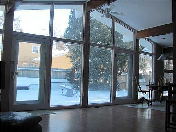 WOW! Take a look at this contemporary ranch with designer colors, open floor plan, wall of windows is amazing! Just painted, new carpets, newer laminate floor with many updates. Roof, furnace, A/C, hotwater replaced within 10 years. Enclosed porch with hot tub, set back from road offers privacy as does the fenced in back yard. Very nice!