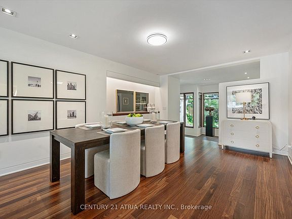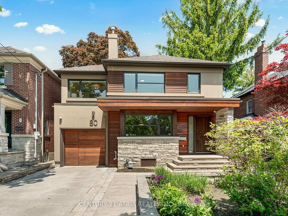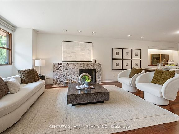 Step into a world of refined elegance at this stunning contemporary home, crafted by an award-winning architect Richard Librach and featured in The Globe and Mail for its impeccable design. From the moment you arrive, the striking façade - a harmonious blend of natural stone and warm wood sets the tone for the artistry within. The spacious foyer welcomes you with handcrafted oak doors and imported stone flooring, leading into an open-concept layout designed for both grandeur and comfort. The living room is a masterpiece of modern living, featuring wide-plank Brazilian oak floors, a wood burning fireplace with a granite surround, and expansive windows framing the lush surroundings. Nestled in a top-rated school district and just minutes from high-end shopping, dining, and transit, this is luxury living at its finest.