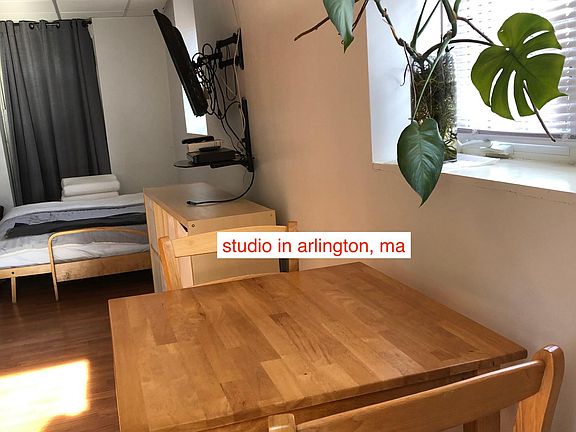 **PLEASE NOTE - no parking is included nor available in neighborhood for this fully furnished rental** This COZY, PRIVATE, GROUND FLOOR FURNISHED STUDIO (includes WIFI + ALL UTILITIES), is a one bed in-law style apartment. The unit has an updated Ikea kitchen and comes furnished with all you need including couch, HDTV, full size bed, dish-ware, basic pot/pan set, utensils, and many other items. Also, all utilities (heat, hot water, wifi) are included. Yes, including high speed (75/75MB Fios). Therefore you will have no internet, electricity, or heating bills to worry about. You can plan your monthly budget with one payment via Venmo (or check). All you need is your suitcase and mobile. F. E. A. T. U. R. E. S. This sunny studio apartment in a tree-lined Arlington neighborhood includes or has access to: * PRIVATE GROUND FLOOR ENTRANCE (3 steps down to studio from street) * ONE YEAR LEASE (until August 31 2021) * HDTV (just plug in your Amazon Fire TV Stick or Apple TV) * GARDEN & PATIO outside your door * WIRELESS WIFI- HIGH-SPEED INTERNET * VENMO accepted as the monthly payment * ALL UTILITIES INCLUDED (wireless internet, heat, hot water, electricity) * SNOW REMOVAL (all shoveling is done by the landlord) * ON-SITE LAUNDRY (shared washer and dryer on premises in the basement) * WHOLE HOUSE WATER FILTER (2 stages filtered drinking water system filters all faucets & shower) * FURNISHED (includes kitchen table; 2 chairs, full-size mattress on frame, a nightstand, full kitchenette with a microwave, fridge, stove, basic dish set, few pans; utensils set) *WELL-LIT WALKWAY - entry with automated motion lighting TERMS * move-in now (pro-rated as needed) * rent per month ($1,375) - Includes All Utilities + WIFI * 11 month rental agreement term (until - Aug. 31, 2021) * no parking space available for vehicles (on or off-street) * smoking not allowed inside in the studio or on-premises * no dogs, cats, pets, or other animals allowed * we accept VENMO (or personal check or bank wire) * there are three steps down from street level REQUIREMENTS *first & last month's rent ($2,750) *security deposit ($1000) *work & housing references *agree to credit & criminal history check ($50 non-refundable fee) NOTE *Arlington has a no overnight parking ordinance and this property does not offer off-street parking, this rental is best suited for a non-vehicle owner. We have bike storage available. CONTACT *Email us, and tell us your questions and a little bit about your rental situation, please include intended move-in date. We are currently doing virtual tours of this rental by appointment. no agents please 9 month rental agreement (move-in December 1, 2020 - August, 31, 2021). Sooner move-in possible. All utilities included. No smoking or pets allowed. No parking on or off street parking available.