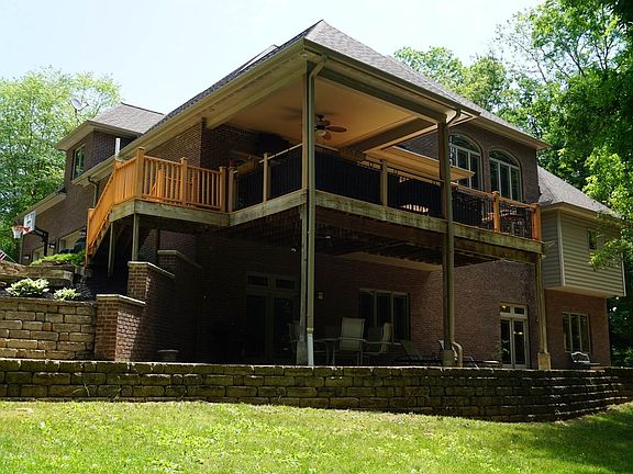 MAGNIFICENT HOME SITTING ON 3.06 PARTIALLY WOODED ACRES W/ TRAILS TO THE CREEK. YOU CAN RELAX ON THE COVERED UPPER DECK OR THE OPEN PATIO NEXT TO THE FIRE PIT. THE ATTACHED 2 CAR GARAGE FEATURES 10' WIDE DOORS, MEASURES 35X26, ALLOWING ROOM TO PARK 3 CARS. A DETACHED 12X16 STORAGE BUILDING ALLOWS STORAGE FOR MOWERS, ETC. INSIDE OFFERS A 2 STORY FOYER & LIVING ROOM WITH GAS FIREPLACE, (TV INCLUDED) & A WALL OF WINDOWS OVERLOOKING THE BACKYARD. FORMAL DINING ROOM FOR ENTERTAINING. KITCHEN WITH GRANITE, ALL APPLIANCES, BREAKFAST BAR & AREA FOR A TABLE. OFF THE KITCHEN IS THE 2ND MAIN LEVEL FAMILY AREA. THE MASTER SUITE HAS A VAULTED CEILING, PRIVATE BATH TO MAKE YOU FEEL LIKE YOU ARE IN A SPA PLUS A 13X15 CLOSET. UPSTAIRS ARE 3 ADDITIONAL BEDROOMS & FULL BATH. THE FINISHED LOWER LEVEL OFFERS 10' CEILINGS, FAMILY ROOM, STORAGE ROOM, 2 MORE BEDROOMS AND FULL BATH. LAUNDRY IS LOCATED ON MAIN LEVEL AS WELL AS A HALF BATH.