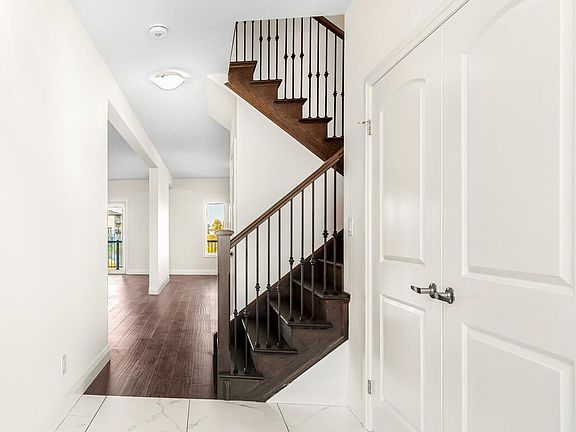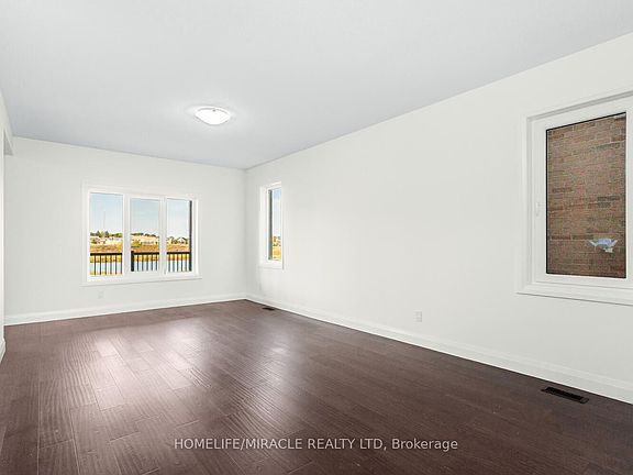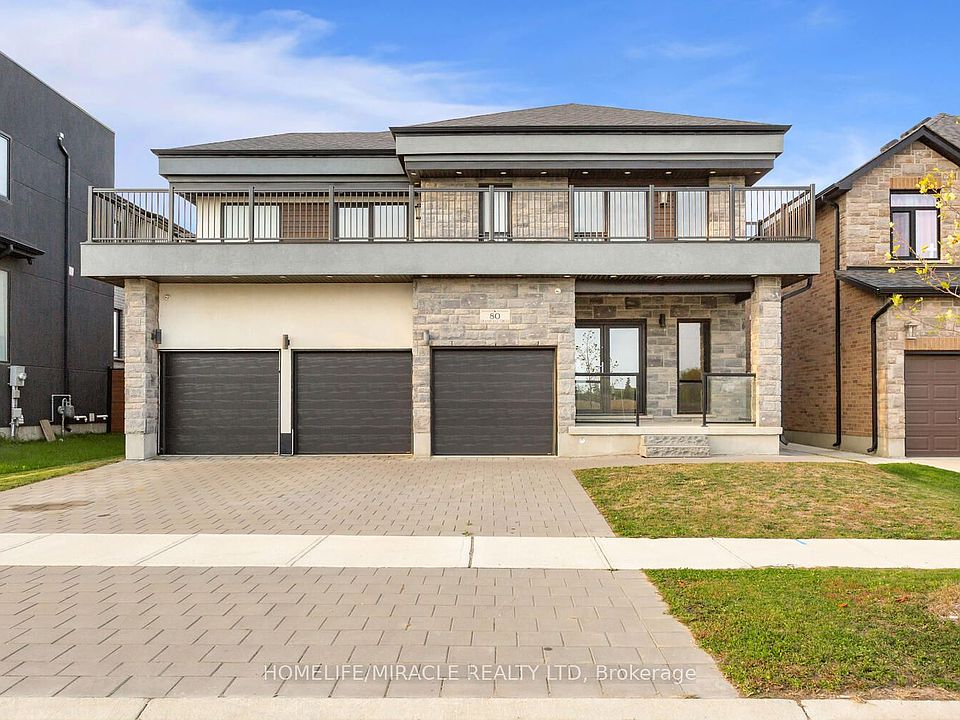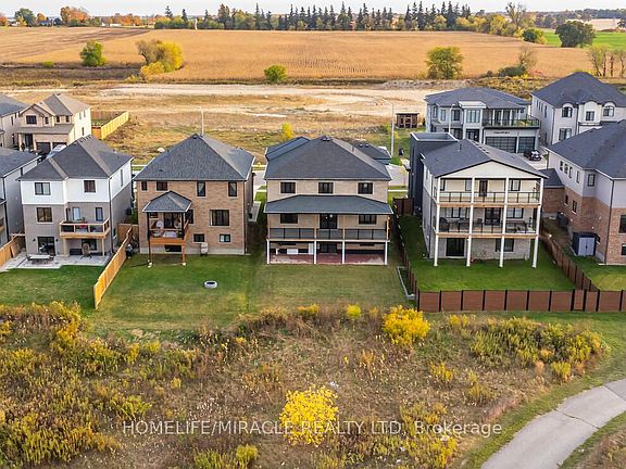 Welcome to 80 Grandville Circle, featuring the sought-after Taj - The Modern Model with an upgraded elevation that includes elegant partial stone detailing. This stunning 5-bedroom, 4-bathroom detached home offers a functional and spacious floor plan with approximately 3,720 sq. ft. of total living space, including the garage. The open-concept main floor showcases a chef's kitchen with upgraded cabinetry, sleek countertops, and brand new appliances including a fridge, cooktop, hood, built-in microwave oven, washer, and dryer. A rare main-floor bedroom with a full bath adds versatility for guests or multigenerational living. The inviting living room is anchored by a cozy fireplace slot and expansive windows that fill the space with natural light. Upstairs, the luxurious primary suite features a spa-inspired ensuite and access to a large balcony deck, perfect for morning coffee or evening relaxation. With a walk-out unfinished basement, 3-car garage, and a premium ravine lot (50.21 x 114.42 ft), this home combines style, comfort, and location in one exceptional package. Located in the heart of Paris, Brant, close to top-rated schools, parks, and shopping, this is a rare opportunity to own a true gem in a thriving community.