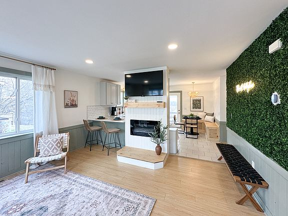 When entering the home you will find a spacious bright and airy open concept living, dining, and kitchen space. The living room offers an electric fireplace with a 50" Smart TV (log into your own streaming services!) mounted above.
