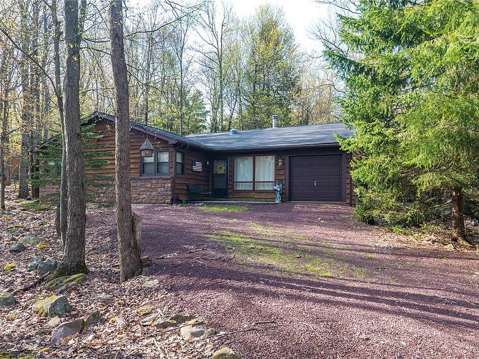Lovely cottage in the woods is the perfect place to get away and offers so much both inside and out! Split Rock community amenities include access to golfing, tennis, fitness center, trails, private beach, motor boat lake, swimming pools, movie theater and bowling. Flagstone front porch welcomes you as you enter into the large living room highlighted by a Stone Wood Burning Fireplace. The spacious Eat-in Kitchen provides an abundance of cabinets and plenty of counter space. Gather in the Family Room with vaulted pine ceiling to play pool and watch TV. Step out onto the expansive Deck and enjoy views of the peaceful surroundings. Four good-sized bedrooms, two full bathrooms, and one car Garage complete this beautiful home. Many upgrades throughout including newer on demand whole house heater. Appliances and some furniture included. Convenient to major routes and a variety of shopping and dining. Jack Frost/Big Boulder ski resorts minutes away. Start making memories today!