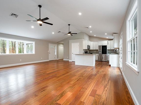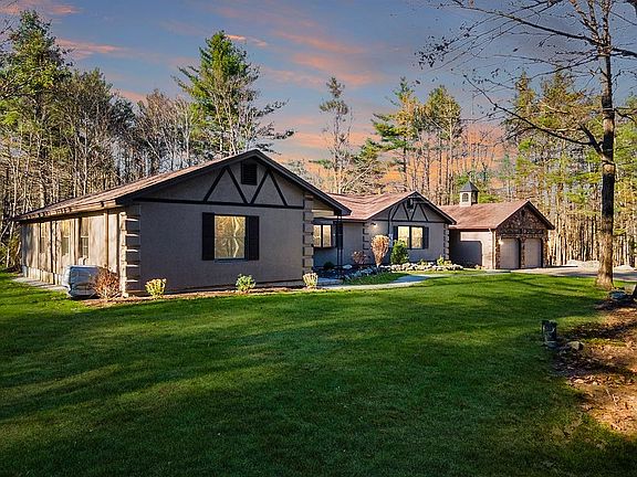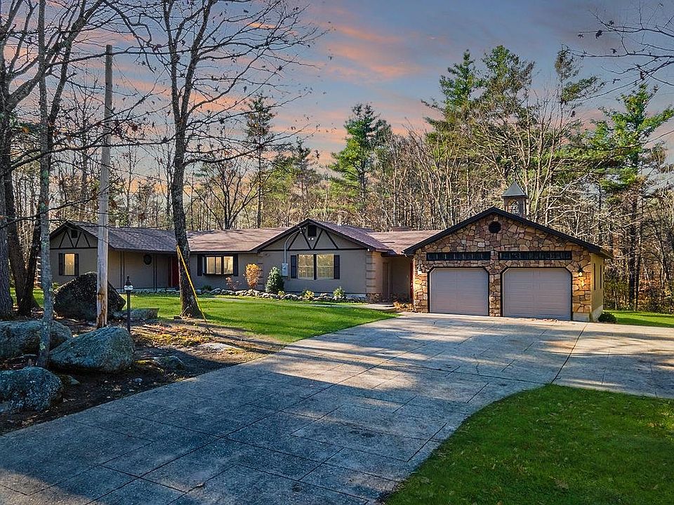 Discover single-level living at its best in this executive 4-bedroom, 3-bath ranch on 5 scenic acres in Weare, NH. Recently rebuilt from the studs with meticulous craftsmanship, this home offers an open-concept layout featuring cathedral ceilings, wood floors, central air, and a cozy wood fireplace. The gourmet kitchen is a chef’s dream, with granite countertops, high-end appliances, pantry storage, and a wine cooler—perfect for everyday meals or entertaining. The private master suite boasts a luxurious tiled shower and granite vanity, complemented by three additional bedrooms and a versatile office space. An oversized 24x28 2-car garage provides ample storage and room for larger vehicles. Step outside to enjoy the in-ground pool or nearby nature trails. Recent updates include WiFi-enabled light switches, two AC systems, on-demand hot water, a new roof, and boiler. This home, completely restored after a previous roof fire, showcases quality and peace of mind. ( agent interest)