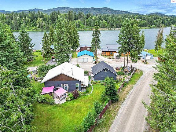 This thoughtfully done Craftsman retreat is a nature lovers paradise to swim, boat and enjoy the Pend Orielle River right from your own property. Soak in sweeping water views and enjoy private waterfront deeded access right from your backyard oasis. Relax in the hot tub beneath the stars, stroll the flagstone paths through lush gardens, or unwind by the cozy firepit. A peaceful sun porch, inviting patio area, and a whimsical rustic swing complete this picture-perfect setting. Inside, the open-concept great room welcomes you with vaulted tongue-and-groove ceilings, a wall of windows, and beautiful French doors that fill the space with natural light. The kitchen is as functional as it is stylish, featuring hickory cabinetry, rich walnut countertops finished in teak oil, and an inviting breakfast bar perfect for casual meals or morning coffee. The spacious primary suite is a true retreat with a walk-in closet and spa-like ensuite bath, complete with dual vanities, a makeup counter, a luxurious soaker tub, and a tiled walk-in shower. With two additional guest bedrooms, an office nook, and two lofts for flexible use, there’s room for everyone to relax, work, or play. An oversized detached 30x30ft four-car garage includes a workshop and a large unfinished bonus room above-ideal for a future guest suite, art studio, or home gym. The landscaped yard is a gardener’s delight, featuring fruit trees, a greenhouse, fenced garden area, and a full sprinkler system. Whether you're seeking a peaceful escape or a basecamp for four-season adventures, this exceptional property offers it all-privacy, charm, and direct river access-just 5 miles from town.
