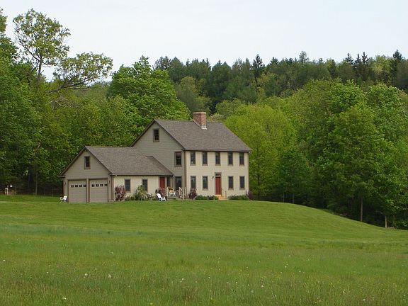 Stunning views of the Green Mountains, secluded setting, pond and barn on over 13 acres. Newer Colonial with attached garage and spacious deck. Mudroom, first floor laundry with inviting kitchen with custom cabinets and open to dining, family and living room. Fireplace graces the expansive living room and glass doors to deck let the sunlight stream in. Partially finished basement with guest room. 3 large bedrooms upstairs with full bath and master en suite and walk in closet. Impeccably maintained homestead