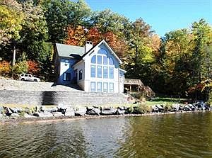 Custom waterfront home on 2nd Burden Lake feat. 175 ft. of water front & dock. 1st floor is impressive and open! Liv.room w/soaring ceiling, 2 story stone FP in DR, & 1st floor master suite all feat. fantastic lake views ,sunsets. Finished walk out basement 2094sq.ft, has in-law potential: 2 brms, kitchenette, fam.room, full bath, lake view! 2nd floor: 3 bedrooms 2 full baths overlooking living room w/lake views (needs flooring and finishing touch). Unlimited potential in a full walk up attic. Large deck!