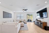 Like-new, single-story living in The Lakes at New Riverside! This 4-bedroom, 2-bath home is a thoughtfully designed space featuring stunning white oak-style LVP floors and designer finishes throughout. The chef-inspired kitchen showcases quartz countertops, a gas cooktop, double oven, large center island, and walk-in pantry-perfect for both everyday living and entertaining. ...