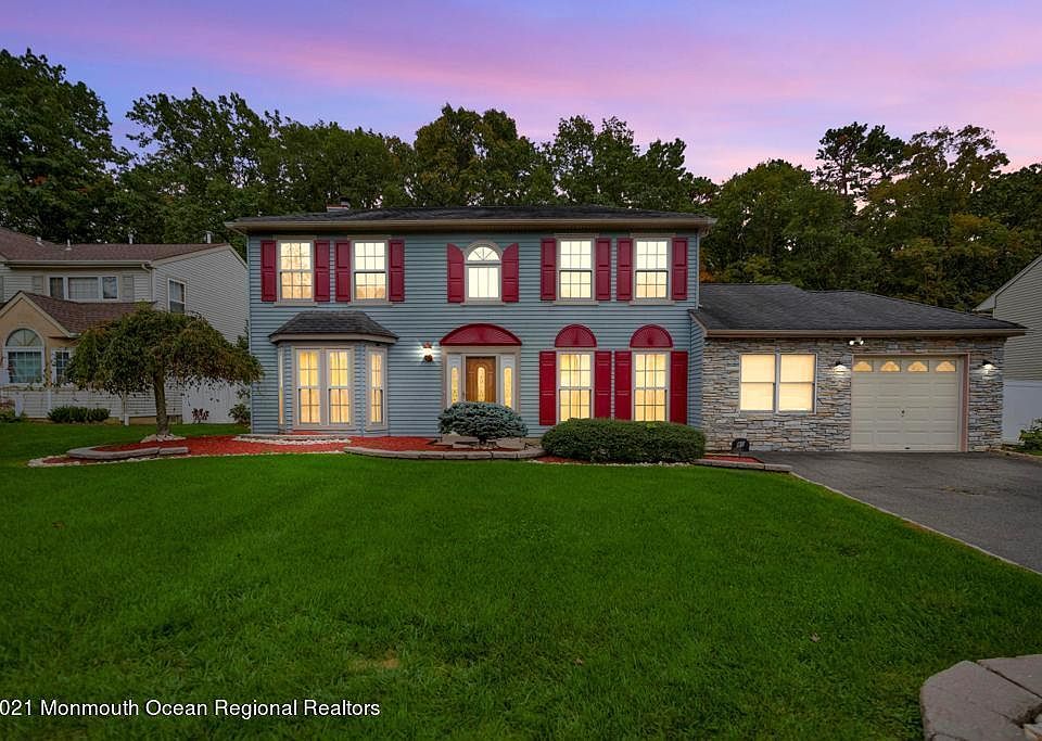 RARE FIND - Prime lot backing up to a wooded conservation area! Quiet and Private! Classic Center Hall Colonial with 2-story foyer, formal dining room, living room, and great family room. Almost 2500sqft of interior living space including a converted garage which gives you a choice of a Playroom/Den/Office. The 5th Bedroom is conveniently located on the first floor as well. NEW hardwood floors throughout. Resort style Backyard with a heated gunite/concrete in-ground Pool with Spa attached. NEW TREX deck, retractable awning, and a shed for outdoor storage. Master Bedroom Suite features a walk-in closet and spacious updated bathroom. Replaced Windows, High-Efficiency Furnace, HWH, & Central Air-Conditioning. Close to Rt9, shopping, public transportation, and restaurants!