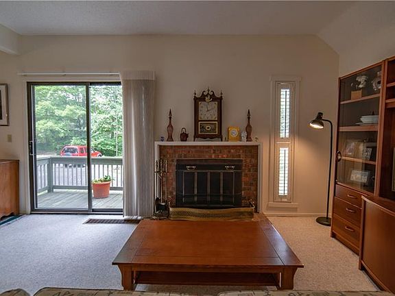Light, bright and adorable describe this well maintained carriage house. The open floor plan makes for easy living and provides great space for a comfortable lifestyle. The main living area features a lovely fireplace, built in window seat and sliders to deck. Master bedroom has double closets and cozy window seat to relax and enjoy your morning cup of coffee. NEW washer/dryer, hot water heater and dishwasher. Bathroom is equipped with a large easy access shower with grab bars. No steps or stairs involved to access the ample close by guest parking or garage. Just waiting for you to move in and add your personal touch Hardwood floors under carpet could be refinished. All buyers pay a one time equity fee of $1,500 at closing to the Heritage Village Foundation.
