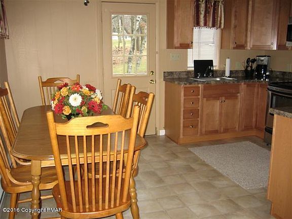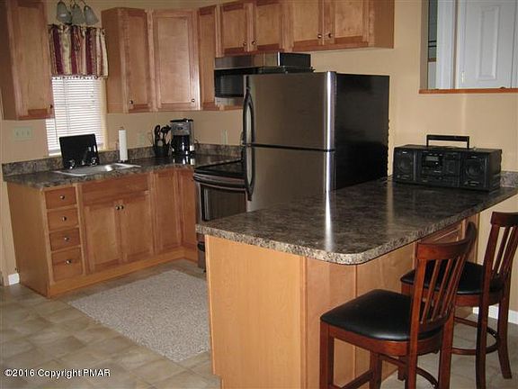 Totally Remodeled 2 bedrooms, 1 bath ranch. House features pergo flooring, electric zoned heat, LvRm wood burning stove, Cathedral ceiling, kitchen with all appliances & snack bar, dining area, utility closet w/washer and dryer, L shaped deck. Across from Clubhuose and school bus stop.