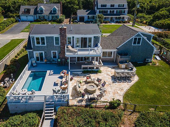 One of a kind, beachfront getaway overlooking the sparkling waters of Cape Cod Bay on the coveted north side of Dennis. Sip your morning coffee on the deck or the dune and watch the ever changing tapestry unfold on the bay. Soak up the sun on the beach, go paddle your kayak in the bay, play bocci on the uncrowded beach, float in the built in pool and rinse off in an outdoor shower with the best views on the Cape! Cook a feast for your loved ones at the outdoor kitchen with its soapstone bar top and dine at the cozy covered veranda. Finish your perfect Cape day by the gas fire pit, listening to music and gazing at the stars unblemished by city lights. This house is all about indoor/outdoor living!Located in a quiet picturesque neighborhood near Nobscusset point with commanding views of the coast, it is minutes from the quaint village of Dennis. This setting is unrivaled. The house has been well cared for with regular maintenance and updates over the years. 2 en-suite bedrooms on the second floor with dazzling views and a second floor deck, one bedroom on the main floor and a 4th bedroom over the garage for those family get togethers. The recently updated kitchen sits adjacent to the dining area and living room which features a gas fireplace. Two additional rooms on the main floor are the sitting room with access to the deck and a cozy sunroom that connects the main house to the garage and brick courtyard. The finished lower level media room has beautiful built in bookshelves and built in surround sound. There's also a spacious garage with wall organization storage and plenty of room for fishing poles, beach toys and kayaks! Central A/C for hot summer days, a generator for those pesky Nor-Easters, a security system to keep you safe. Look no further, this beach house is simply exquisite!
