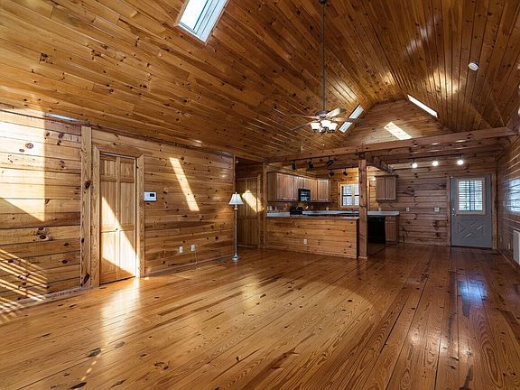 Who doesn't love a log cabin? The "wow" factor in this home is amazing! This 2 bedrooms, 2 bathrooms, huge family room, and spacious kitchen are all situated on 1.14 acres, with stunning wood floors. Skylights provide beautiful natural light throughout the home. Walk-in pantry, laundry room. Enjoy nature on the spacious front porch or screened-in back porch. Cul-de-sac lot. No HOA. Convenient to major highways.