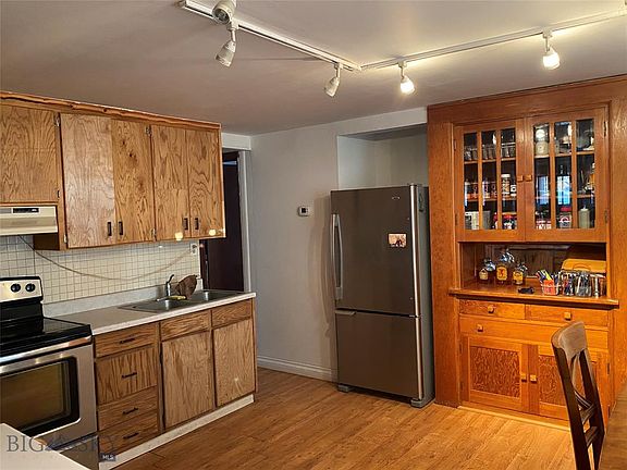Come home to small town living and a charming older home offering old world style and updates. You'll love the mostly original wood floors and newer laminate in the wide open kitchen. Kitchen also boasts a fir, built-in china cupboard. The living room has a beautiful brick wood burning fireplace and is open to the kitchen. Two bedrooms are one side of the home and the big master on the other. One bedroom has an original built-in dresser. You'll enjoy the fully fenced backyard with a large deck, an enclosed shed and an open shed. The yard has mature landscaping with big old trees and has an irrigation ditch with seasonal water flow in the front. The basement is unfinished, but there is plenty of space for expansion.