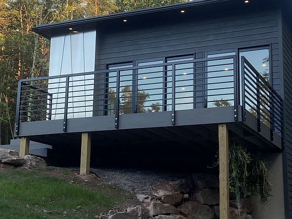 NEW CONSTRUCTION. OFFERED UNDER APPRAISED VALUE. Adena Design’s latest model offers the sophistication of modern styling combined with maintenance free materials and functionality. The home is crafted with Pella casement windows, Allura cement board siding, composite decking and Superior Walls. Promoting relaxation and peace of mind in the midst of nature, it boasts an open main level floor plan with a full wall of operable glass that opens onto a deck with a pond view. Stainless steel appliances, a large undermount stainless steel sink and quartz countertops compliment the refined design of the kitchen cabinets. The kitchen cabinets are furnished with soft close hardware and under cabinet lighting. The master bedroom is located on the main level and features a walk-in closet and private cantilevered balcony. There are solid wood floors throughout the main level of the house. Both bathrooms present ceramic tile shower and tub surrounds with glass entry doors and Moen plumbing fixtures. Floor to ceiling windows flanking a large metal clad gas fireplace combine to form an artistic focal point that accentuates your view of the surroundings from the main living space. The lower level consists of a bedroom, full bathroom and oversized one car garage with plenty of space to store your kayaks, ATV’s, etc. The wood and glass lower level entry door, equipped with a keyless entry, opens into a foyer with ceramic tile flooring and a custom floating steel and wood staircase that is accentuated with backlighting. Garage door, main entry door, appliances and ceiling fans are WIFI compatible. The 2.5 acre lot is situated a stone’s throw away from a large community pond on which you may fish, swim or picnic in a serene wooded landscape. This property is located in the Sleepy Creek Farms subdivision. WIFI access is available. Minutes to Cacapon State Park and downtown Berkeley Springs, WV. Great Airbnb investment opportunity! See you soon! DIRECTIONS TO OPEN HOUSE: Take 522 South through Berkeley Springs. Pass Cacapon State Park on your right. Turn left on Oakland Road. Travel approximately 2 miles. Bear left onto Timber Ridge Road. Immediately bear right onto Morton Grove Road. Travel approximately 3/4 mile. Turn right onto Holly Hill Lane (at the Sleepy Creek Farms neighborhood sign). Follow the lane back until it splits. Take the split to the left (Holly Hill Lane). Proceed up the hill. The drive is on the left past the second pond. There will be Long & Foster signage as well once you enter the neighborhood.