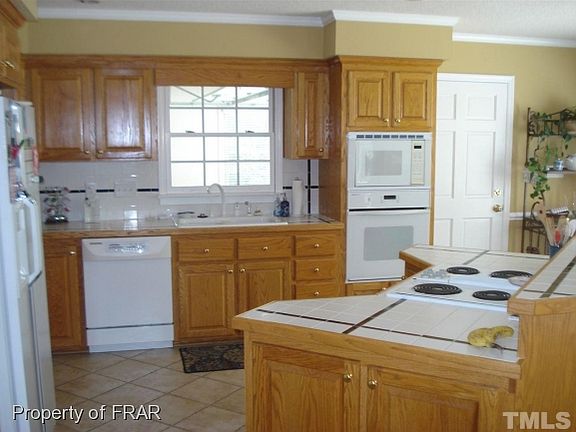 -Immaculate home in walking distance of Campbell University. Home features formal dining, hardwoods & ceramic tile throughout. Lg kitchen w/lots of cabinets & island w/bar. Lg den with FP & gas logs. Lg sunroomn off den with vaulted ceiling & ceramic tile. Master w/jetted tub, sep. tile shower, & double vanities. Covered patio, 3 car detached garage w/heat & air, full bath & walk up unfinished area above. Lg shelter off garage & additional storage. Sprinkler system with its on well.