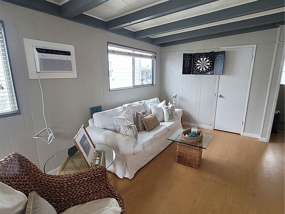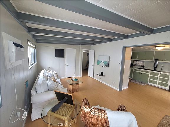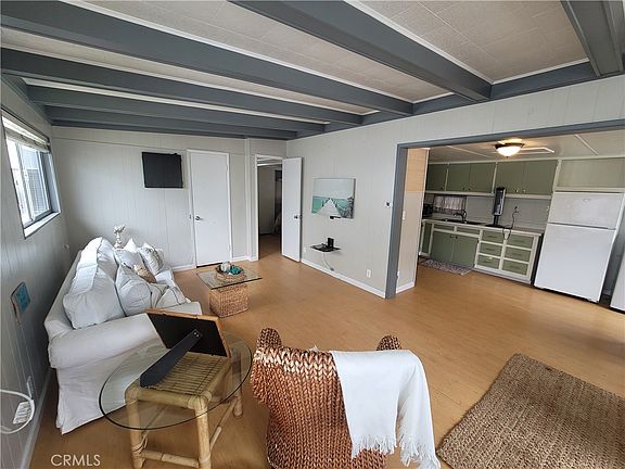 Great little cottage by the sea! Nice beamed ceiling, open floor plan, central heat and air, newer appliances, washer and dryer stay! Monthly land lease is just over $2000. One block from Pacific City shops and a short walk to the Huntington Beach pier. One car parking spot under carport. Motivated seller, all offers will be considered!