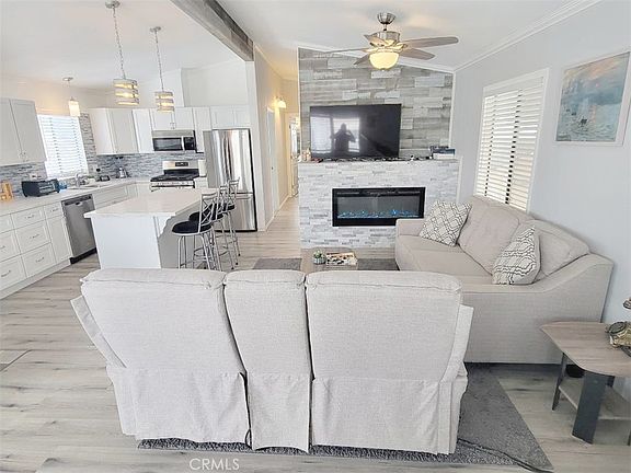 Across the street from the OCEAN and Famous Huntington Beach Pier in “Surf City Beach Cottage” upgrades include: Copper plumbing, new wood siding around the home, new balcony home anchored down all the way around. The yard was all cemented. All private fencing. End unit! Look no more! Gorgeous open floor plan. Open Dining room and living room. This home offers charm and character along with 2 bedrooms & 2 bathrooms. Over 1,152 Sqft. Light and bright with beautiful, vaulted ceilings throughout and Barn door. A private carport attached to the home that fits 2-3 cars with guest parking also available. You just can't get enough of the natural light in this home in the heart of Huntington Beach. You must see it appreciate all the features this floor plan and kitchen has to offer. Included in this home are stainless (Stove, Fridge, Dishwasher, Washer and Dryer). Plenty of extra storage connected to the home in the giant backyard with included pool table and cabana. The park monthly space rent is approx. $2,600 a month. A private pool and spa are in the park. Located down the street from the "New Pacific City" with new shops and restaurants. Also, one block south from the famous Huntington Beach Pier. Wonderful bike paths for peddling along the Pacific Ocean.