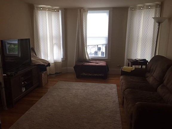 Pet friendly 2 bed/1 bath near Forest Hills. This building is only 5 minutes to the train station. The unit has wood floors, front bedroom with lots of windows, smaller living room with closet and second bedroom with smaller closet. There is a larger closet in the hall that leads towards the kitchen. Eat-in Kitchen with pantry and gas stove ( no dishwasher).Gas heat is not included in the rent. Backyard is fenced in and shared with other units. Laundry in the basement is coin-op , no storage. September 1 move in date.