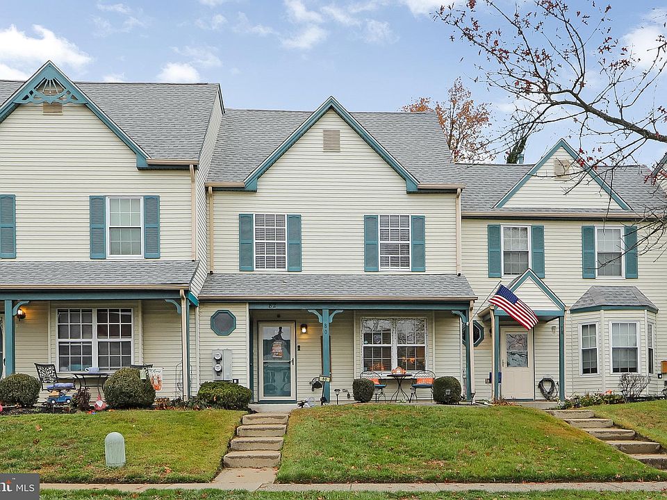 Welcome to 80 Knoll Drive, nestled in the highly sought-after Knoll Run Townhome Community! This beautifully updated 2-bedroom, 1-bath townhome is move-in ready and bursting with charm. Enjoy your morning coffee or unwind in the evening on the cozy front porch, or step out back to your covered patio that has lots of privacy—perfect for relaxing or entertaining. There’s even an outdoor storage closet for extra convenience! Inside, you’ll love the modern upgrades throughout — wood flooring, plush carpeting, a stunning kitchen with stainless appliances and bathroom remodel, and stylish light fixtures—all completed in 2022. Plus, the new HVAC system (2022) new hot water heater (2023) and oversized walk-in closet add both comfort and practicality. Parking is a breeze with one assigned spot right out front, and the HOA covers lawn maintenance and snow removal, so you can enjoy a low-maintenance lifestyle in a picturesque setting.