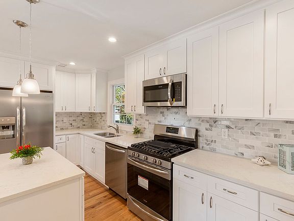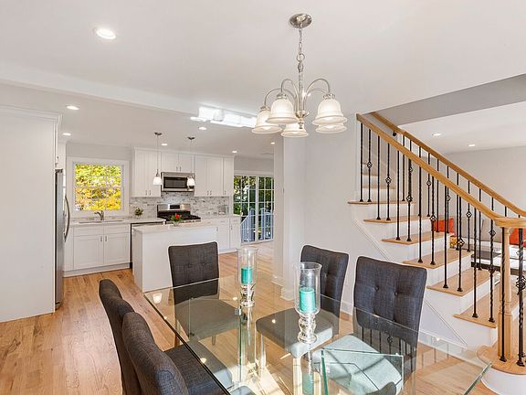 Brand new construction with exterior wall spray insulation throughout on existing foundation. Landscaped, richly enhanced and modern 4 Bedroom and 3 Bath. Welcoming entry with a wooden staircase & an open floor plan seamlessly flows to living room into the informal dining area leading to the beautifully manicured backyard through traditional sliding glass door. Followed by the kitchen and formal dining room wrapped around the staircase with Oak hardwood floors, LED holographic light fixtures and dimmer switches throughout. Top-notch custom kitchen cabinets with Ceasarstone quartz countertops, marble backsplash and quality stainless steel appliances. Guest bedroom located on the main floor which gives access to a finished porch/veranda with white railing right above the garage and a full size bathroom porcelain bath. 2nd level offers three bedrooms, laundry room and two bathrooms with porelain tiles in each. Owner has a real estate license in NY.