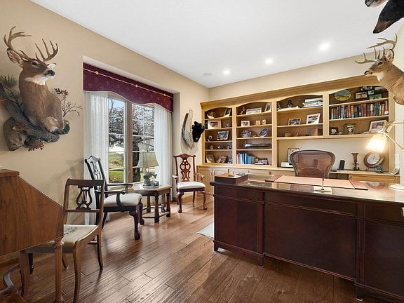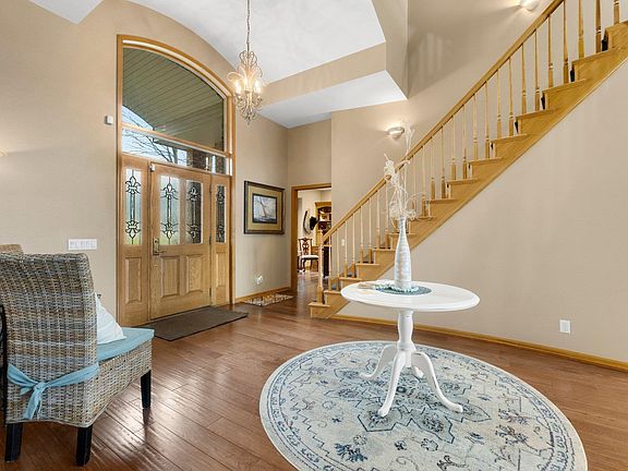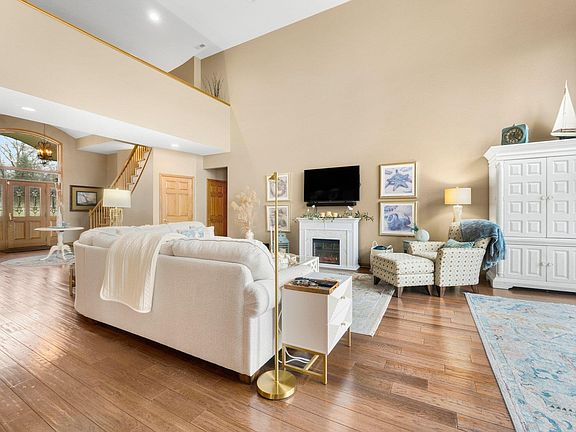 his exceptional lakefront home is far more than just a lakeside retreat—it’s an architectural masterpiece designed for both luxury and comfort. Built with 6-inch walls for superior insulation and featuring elegant curved staircases, this home is as impressive as it is inviting. The meticulously landscaped grounds perfectly complement the stunning design of the house. As you enter, you’re immediately greeted by soaring lofted ceilings and an abundance of natural light streaming in from the expansive windows that offer breathtaking views of the tranquil lake. With over 3,300 square feet of finished living space on the main and upper levels, and an additional 1,670 square feet in the fully finished basement, this home offers a total of 5,000 square feet of luxurious living space. The layout is designed with family and entertaining in mind, featuring 5 generously sized bedrooms and 3 and a half bathrooms to ensure everyone has plenty of room to relax and unwind. The main level includes a stunning master suite with elegant trey ceilings, a spa-like bathroom with a jetted tub, and an oversized walk-in closet. The open-concept design allows for seamless flow between the kitchen, dining areas, and living spaces, making it ideal for hosting gatherings or simply enjoying daily life with loved ones. The gourmet kitchen is a true showstopper, with updated cabinetry, sleek granite countertops, and a large central island—perfect for meal prep or casual dining. For more formal occasions, the home boasts two separate dining areas that can accommodate any gathering, big or small. Upstairs, you’ll find three additional bedrooms, each spacious and bright, along with a cozy sitting area—perfect for reading or enjoying a cup of coffee while gazing out at the lake. The finished basement is equally impressive, offering two expansive living areas, a kitchenette, a bedroom, and a full bath, making it ideal for extended family, guests, or even a private retreat. Step outside, and the beauty of this home continues with a screened-in patio for outdoor dining and entertaining, along with a large deck that overlooks the pristine lake. With almost an acre of land and 94 feet of sandy water frontage, you’ll have endless opportunities for enjoying the outdoors, whether it’s swimming, boating, or simply relaxing by the water. The home also includes a three-car garage and two additional, large unfinished spaces in the basement, perfect for storing all your lake essentials or workshop area.