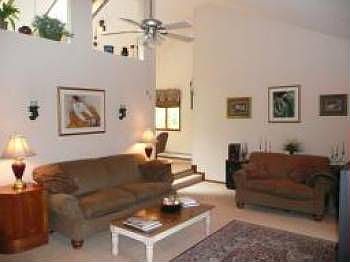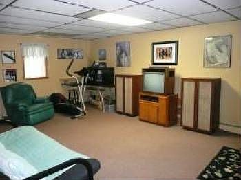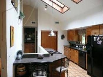 Bright and Open! 3 bedroom Contemporary home tucked away featuring 2 full baths, sunken living room, vaulted ceilings, skylights, finished basement with family room, 2 car attached garage, central air,