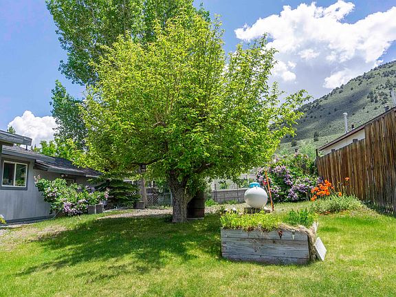 This three bedroom home in the heart of Lee Vining is 1624 sq feet with a living room and even larger den and dining area. The fenced front yard and large fenced backyard are laced with lilacs and a mature apple tree with a covered porch. The garage has some workshop space with plenty of extra parking out front. This home is mostly original and looking for some TLC.