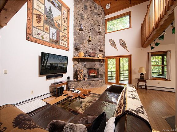 Rustic charm meets contemporary elegance in this spectacular custom built cedar & stone home. This stream front property has direct access to Little Black Lake and Black Lake. The home was built incorporating the outdoors with a 3 level support tree. It features a large loft area with wet bar great for entertaining, a private 4 story tower, an indoor lap pool and large screened in porch with balconies off the guest bedrooms. Custom Chefs kitchen with granite and cherry cabinets. Located in the private, gated community of Black Lakes Estates. A true 4 season retreat, only 2 hours from NYC and even less from North Jersey. Minutes from Bethel Woods Center for the Arts. 15 mins from Monticello Motor Club, Resorts World Catskills, Kartrite Water Park and Yo1 Wellness Center.