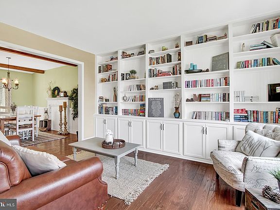 - Ceiling Fan(s), Kitchen Island, Built-Ins, Dining Area, Eat-in Kitchen, Open Floorplan, Breakfast Area, Family Room Off Kitchen, Chair Railings