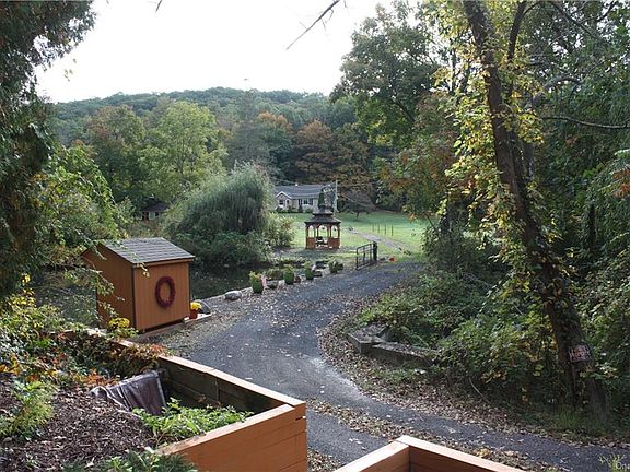 PRICE REDUCED. If Green Acres is where you want to be, then your search is over. Bring the family, the horses and join the ducks currently living on the property. Entering the property you will be see the pond and the house will be in front of you. To your right you will see a large lawn which has post and holes dug for new fencing. To your left you will see a small out building with lots of potential for guest room or small shop. Next you will see a bridge which leads to the Horse Barn with a large hay loft for feeding the horses. One horse is currently enjoying the place all to himself. The 3 car garage with a large open loft currently being used for storage could be an income apartment. There is also a small Gazebo along side the pond to enjoy the outdoors and watch the ducks. There is plenty of room for horses and other farm animals if you so desire The Cape Cod home has 3 possibly 4 bedrooms, master bedroom with master bath, and sitting or reading area to relax and unwind, the other bedrooms have large closets, the living room is large and has a beautiful fireplace with pellet stove insert. The living room and bedrooms are carpeted and the kitchen, bathrooms and dining area are ceramic tile floors. The bedrooms are spacious and have large closets and ceiling fans as does the living room. The kitchen has plenty of storage, cabinet and counter space with an area set up to do desk work and or home work. Step out on the porch to enjoy sunsets and the large yard. This gorgeous parcel is waiting for you to put your imagination to work and make your dreams a reality.
