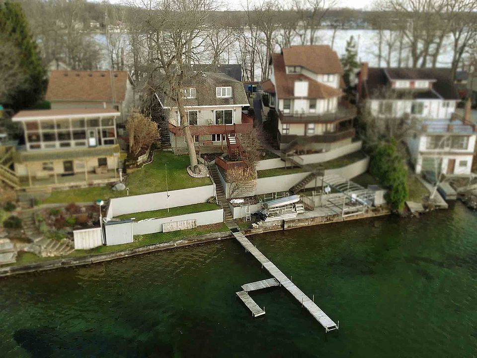 LAKEFRONT ON LAKE JAMES: Nestled in a peninsula location on a private lane with no thru-traffic, enjoy magnificent lake views from both sides including gorgeous sunsets and excellent swimming with this comfortable, year-round, 3-story, 5 bedroom, 3 1/2 bath home. Amenities include a 3-car garage with attic storage, overflow parking, main level deck, large kitchen with barstools, lower level separate family room and rec room with wet bar and walkout to a second deck, central air, new 96% efficiency gas furnace and humidifier.
