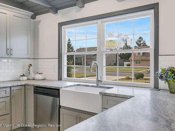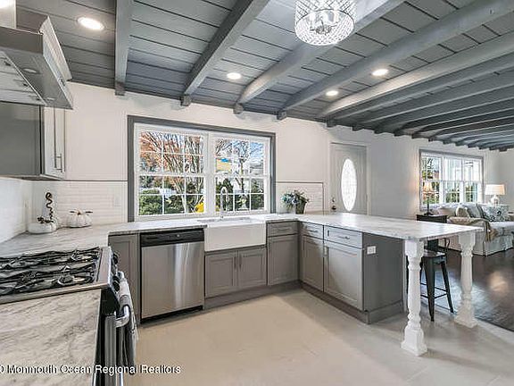 This beautiful newly renovated ranch in West Long branch sits on a half acre just one block from Franklin Lake Park. Beautiful leather finished granite countertops, tiled baths, mudroom, master suite with a walk in closet and so much more make this house a must see. There are also new windows in the main living areas and new siding. The home has three bedrooms and two full baths. The living room and kitchen have a beautiful custom gray wood ceiling. The dining room walks out to a spacious sunroom. Don’t wait, call Donna for a showing at 973-665-4553