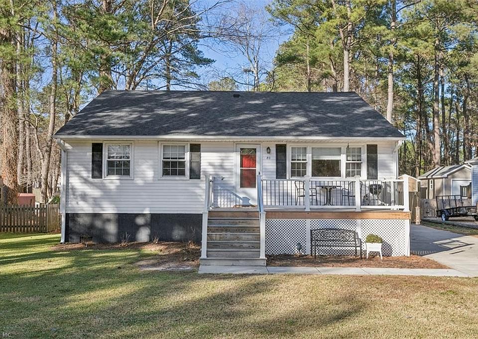 Perfect place to call home in the heart of Poquoson. The semi-open floor plan is great for both relaxing & entertaining. New paint and carpets. Double closets in the primary bedroom. Large spare room can have multiple uses such as playroom, dining room, home office, den, etc. Some of the sellers favorite things about 80 Lodge are large back yard, amazing neighbors, unique floor plan and quiet surroundings.