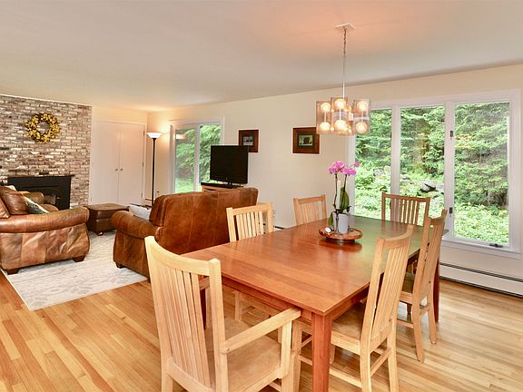This Eastman contemporary ranch style offers just under 2100 sq ft on one floor. There is direct entry from the two car garage with on a few steps up. The location gives you easy access to the Center @ Eastman (club house & restaurant) and quick access to the main entrance for easy commuting. There is plenty of office space if you can work from home. There are 3 large bedrooms, the primary offering vaulted ceilings, wall of glass, walk in closet and private bath. If you are entertaining the living room has a beautiful brick hearth with a wood insert to enjoy. The dining area has ample space and gives you quick access the the back deck. Where you will spend most of your time is the secluded screened porch. It is perfectly sized and has its own heat to extend the use in early spring and late fall. Eastman is a four season community that offers something for anyone of any age. From the 345 acre lake, 6 beaches, golf, tennis, pickle ball, cross country skiing, hiking, biking, indoor pool and fitness center, it's all right here. Delayed showings till open house 07/22 11am-1pm