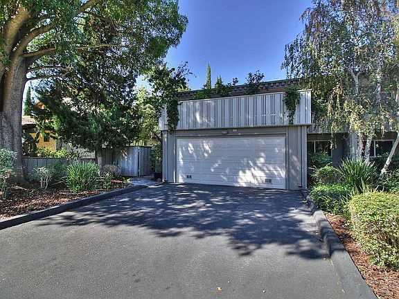 The most single family-like TH you'll ever see. It is at periphery of the complex and interfaces with neighborhood of single fam. homes. This unit faces Jordan Dr. Flagstone patio/garden entry. Spacious LR w/two sets of sliding doors that open to the patio. Large formal dining rm. Eat in kitchen. Three large bedrms. Remodeled bathrooms. Master bedrm and one spare bedrm open to a huge deck. 2 car garage, hardwood floors, dual pane windows, radiant heat. Los Altos Schools: (Almond, Egan, Los Altos High)!