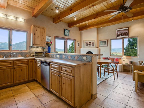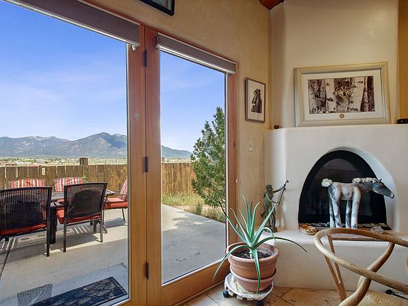 Beautiful, light-filled, cheery, 2bed/1.5 bath ~1300 sq ft home plus a 200 sq ft storage shed on one acre with sweeping views of the Taos Valley. Built with large metal-clad Sierra Pacific windows and doors with outdoor access on all four sides leading to concrete patios tucked among mature trees in a fully fenced yard, this home highlights the indoor/outdoor living possibilities of Taos. Inside you get radiant floor heat, plus a woodstove, a very user friendly kitchen, a half-bath that includes the laundry, smooth plaster walls, and a walk-in closet. The large second bedroom has a Jotul woodstove and is versatile enough to be an office, an art/music space, or a workshop.This property is listed for sale and is currently available from April 1 through October 31. Beyond October 31, it may be available for month to month tenancy. Should the property sell during the lease, tenant(s) shall be offered 60 days notice to vacate and credit for one half of one month's rent. This property is represented by Digs Property Management and we reply to inquiries Monday-Friday, 9-4.