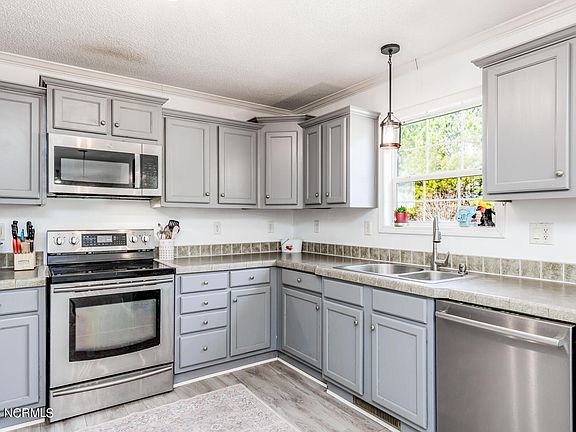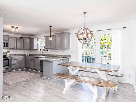 Discover comfort in this updated 4BR, 2BA ranch-style home on just over 1 acre. With LVP flooring, stainless steel appliances, & fresh paint, the sleek ambiance extends throughout. The kitchen, with ample cabinetry and expansive countertops, is a culinary haven. Dual living rooms offer versatility, and the primary suite is an oasis with a spacious layout and a luxurious bathroom. On the opposite side, find 3 more bedrooms, bathroom, and a mud/utility room. Outside, a deck, pool, chicken coop, and oversized workshop with power complete the country lifestyle. Welcome to Gates! NC License #306992