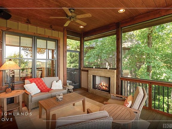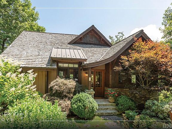 A gardener's delight with mountain and golf views, this beautiful cottage located in Old Edwards Club at Highlands Cove offers everything you could wish for in a mountain dream home. Sip your morning coffee on the screened porch while you light a fire to take the chill from the air. On rainy days, the wet weather stream alongside the home supplies a peaceful burbling soundtrack while you relax into your day. This three-bedroom, three-and-a-half-bathroom home features an open floor plan with extra space for an office or a variety of other uses. As you enter, notice the vaulted ceiling accented with beams, the stone fireplace, and the open, airy ambiance that calls you in. The current owner purchased the home in 2017 and has meticulously and lovingly upgraded it, adding numerous luxurious touches throughout the property. With luscious wool carpet underfoot, Hunter Douglas shades, and custom window treatments in the primary suite and office, you will feel enveloped in luxury. The kitchen is a chef's delight with all the modern necessities for everyday cooking and entertaining. Tucked away near the kitchen, the laundry room provides easy access to the pantry. Guests will enjoy maximum privacy with ensuite bathrooms in all bedrooms, plus access to the lower covered porch. From the porch, proceed along the stone path that leads around the beautifully landscaped sides and back of the cottage. The enclosed garage features a large storage room and attic storage to keep all those seasonal items safely tucked away. In 2020, the exterior of the home was improved with re-stained decks, shingles, and exterior wood. The owner, an avid gardener, added stone steps and incredible landscaping that make this property truly one-of-a-kind in The Cottages at Highlands Cove. This home represents a true showcase of love and devotion to upscale mountain living in one of the finest communities on the Highlands-Cashiers Plateau.