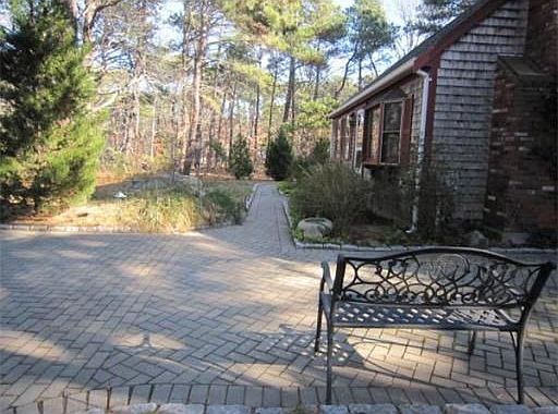 EASTHAM-Oceanside of town. Great Cape Style home offering 3 BRs, 2 BTHs, 12' X 12" Dining Ell w Cathedral Ceilings, Skylight and Ceiling Fan + access to rear yard, MBR is front to back on 1st level w slider leading to the newer deck and private rear fenced in yard. Archtectural Shingles on the roof, beautiful brick driveway and walks. Street offers Underground Utilities and is dead ended with a culde sac. Poured concrete foundation. Very near the bike trail and the ocean.